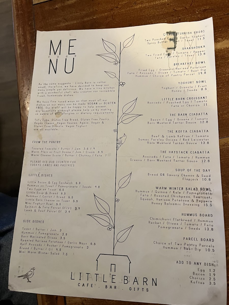 Little Barn Menu
